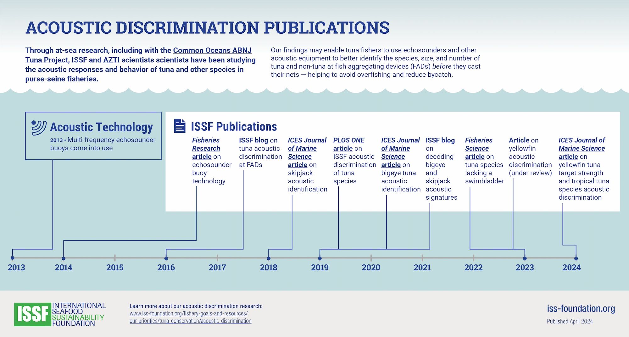 ISSF publications as well as journal articles on acoustic discrimination research are summarized on this infographic, created in April 2024.
