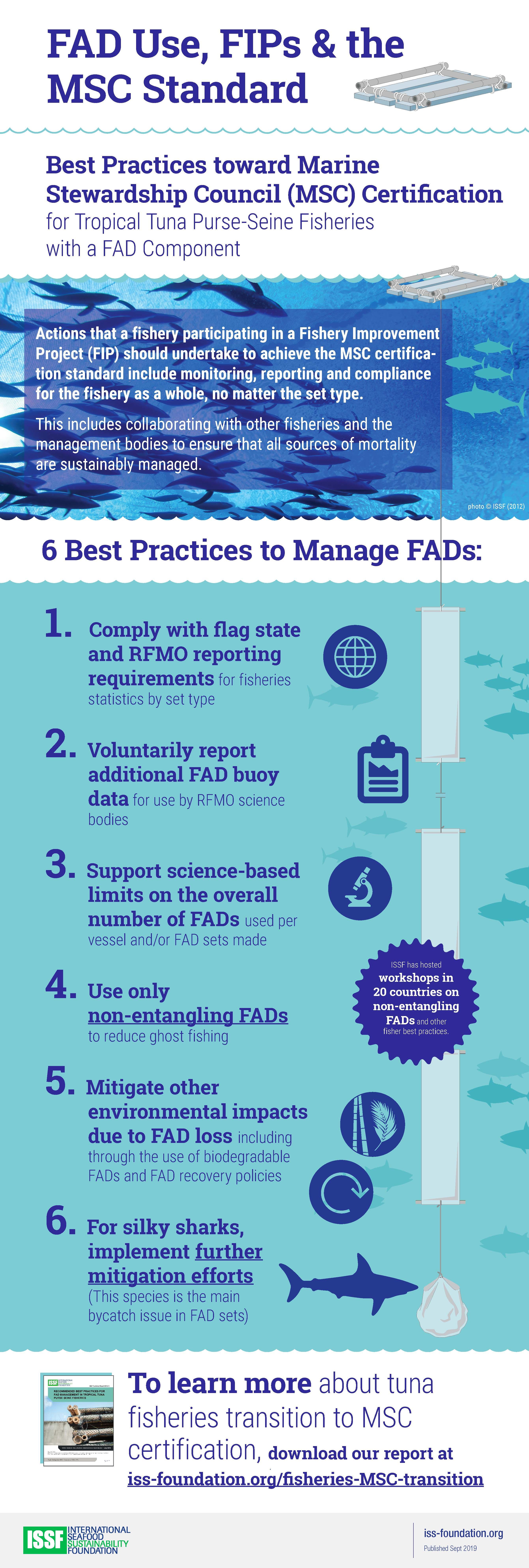 This infographic illustrates conclusions in the report ISSF 2019-11: Recommended Best Practices for FAD Management in Tropical Tuna Purse Seine Fisheries.