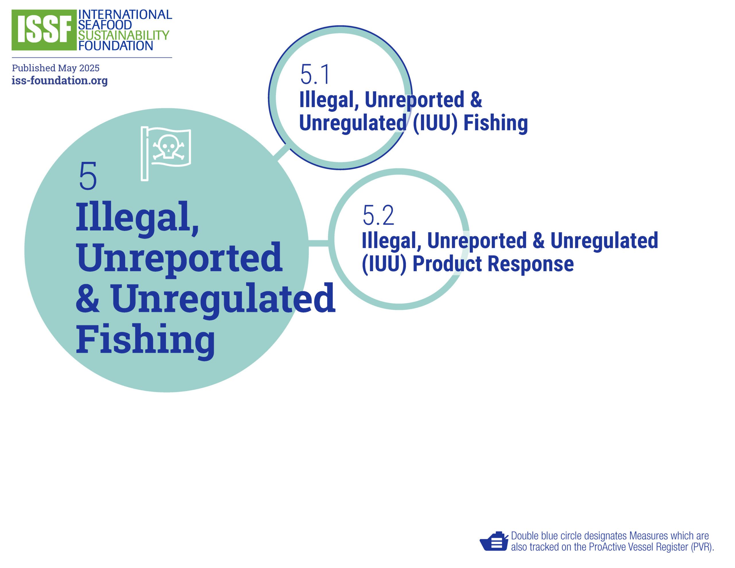 This infographic shows ISSF conservation measures as of May 2025 that are focused on Illegal, Unreported and Unregulated (IUU) fishing.