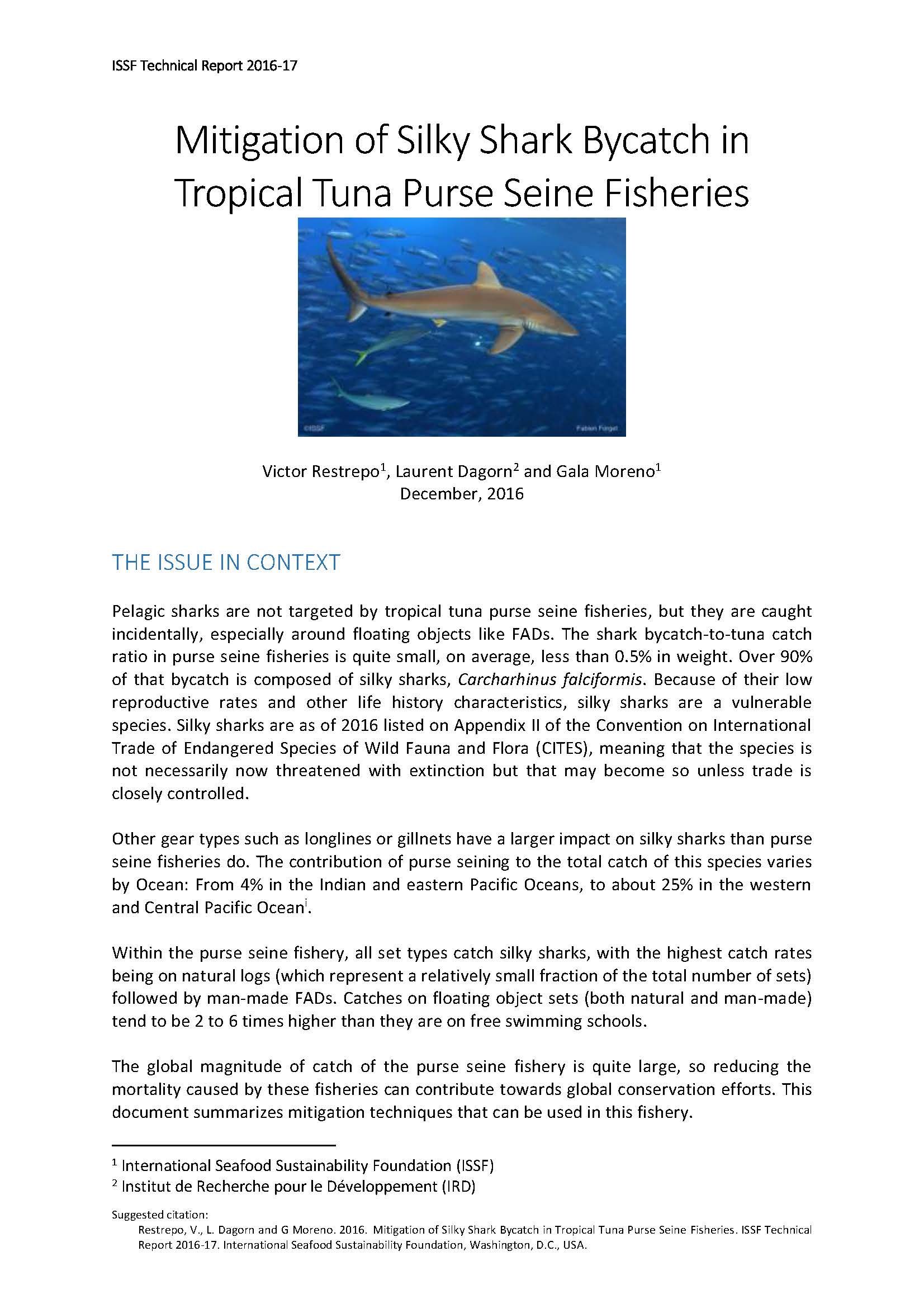 Document: ISSF 2016-17: Mitigation of Silky Shark Bycatch in Tropical Tuna Purse Seine Fisheries