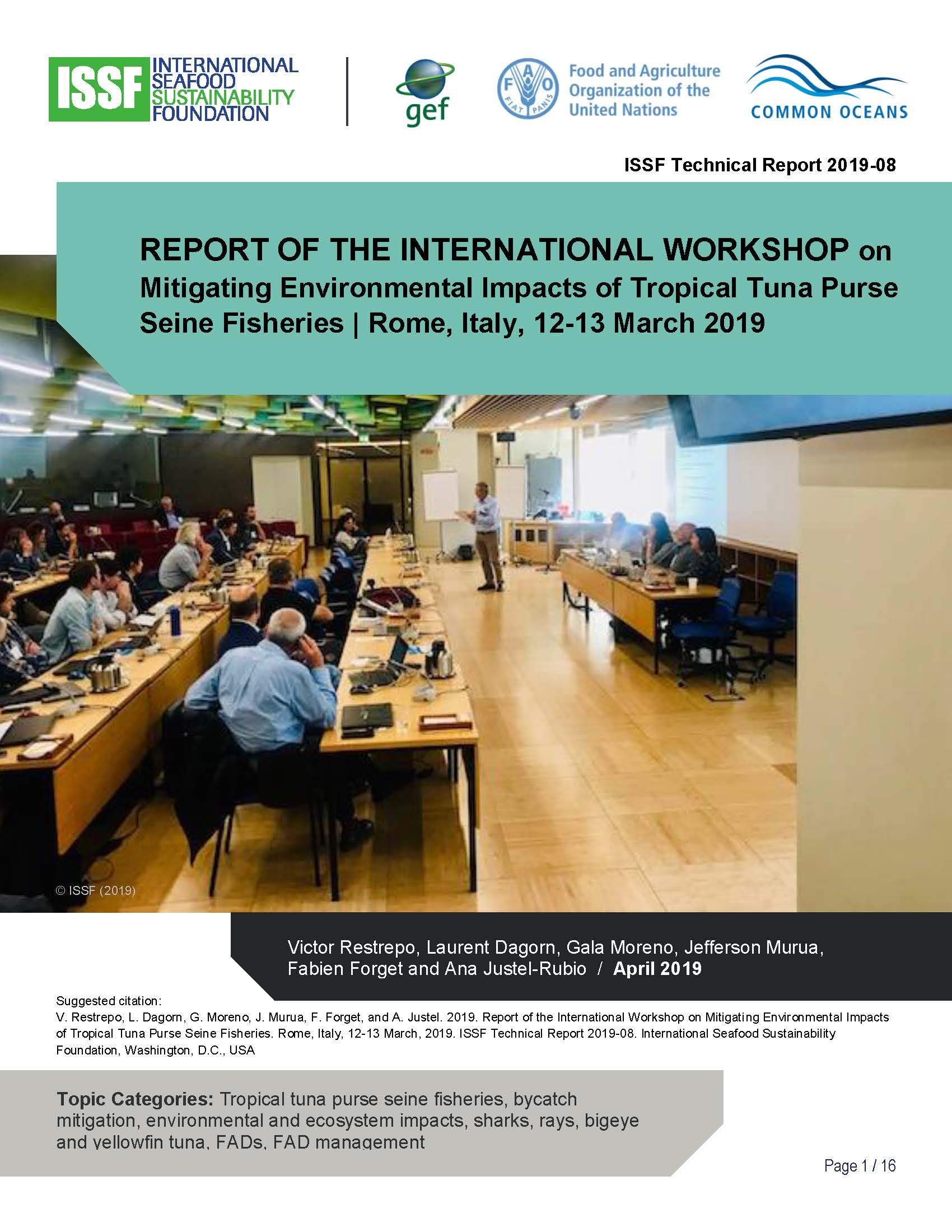 Document: ISSF 2019-08: Report of the International Workshop on Mitigating Environmental Impacts of Tropical Tuna Purse Seine Fisheries