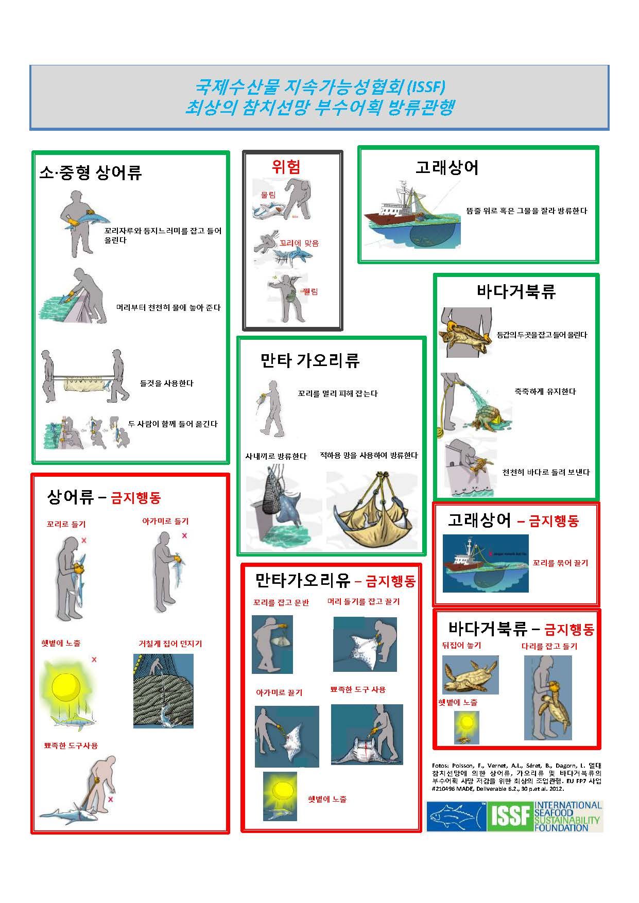 This is a Korean translation of a best-practices poster for purse-seine fishers used in ISSF Skippers Workshops. The poster is also available in Chinese, English, French, Indonesian, and Spanish.