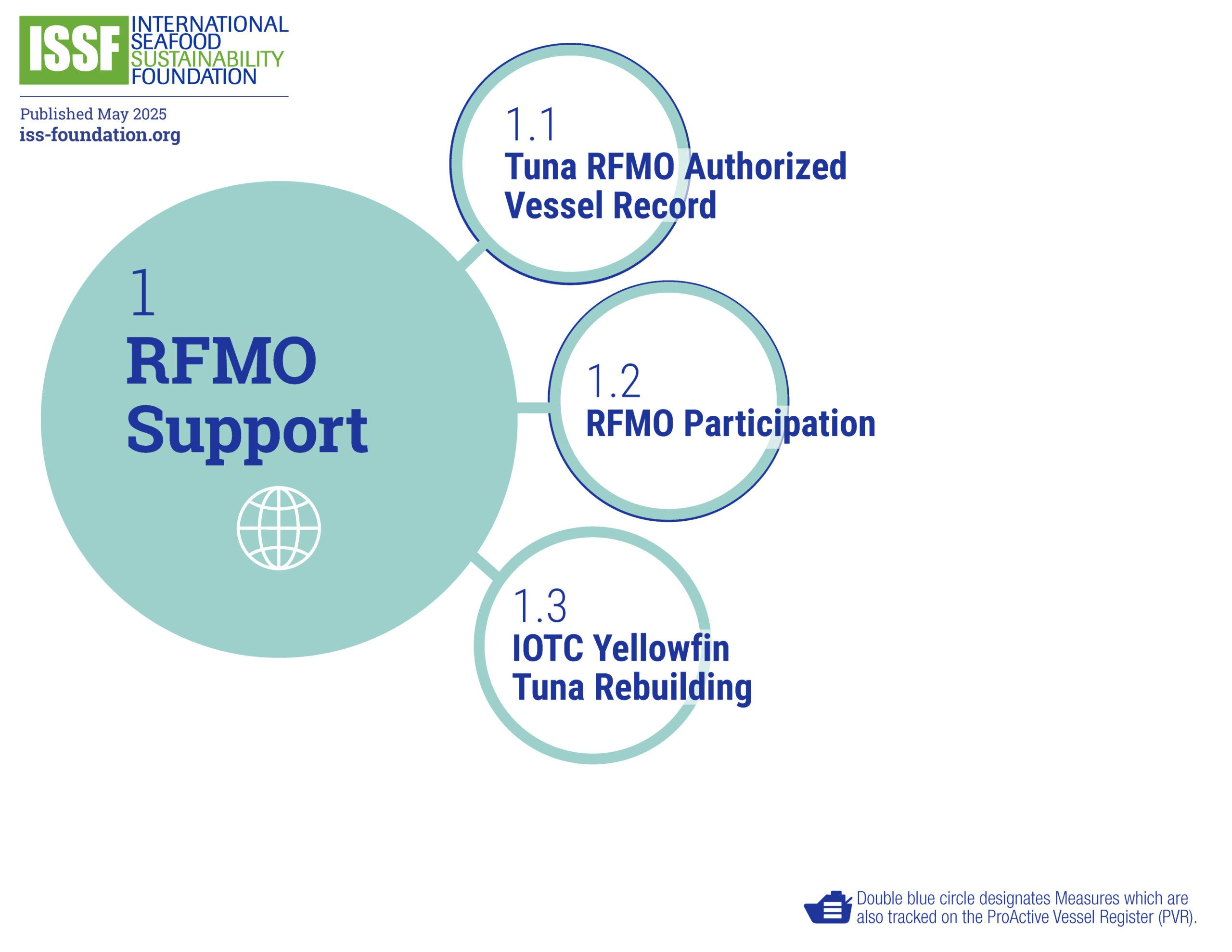 This infographic shows ISSF conservation measures as of May 2025 that are focused on RFMO Support.
