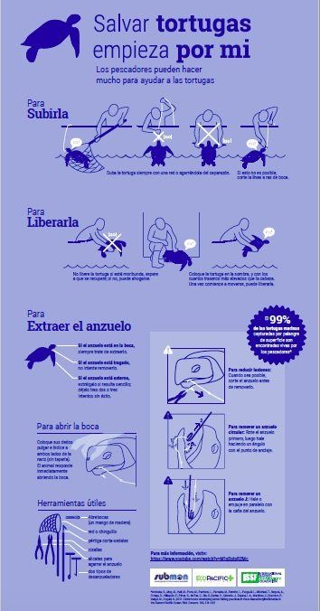 Esta infografía muestra los pescadores cómo manejar con seguridad las tortugas marinas capturadas involuntariamente durante la pesca de atún para ayudarlos a sobrevivir.