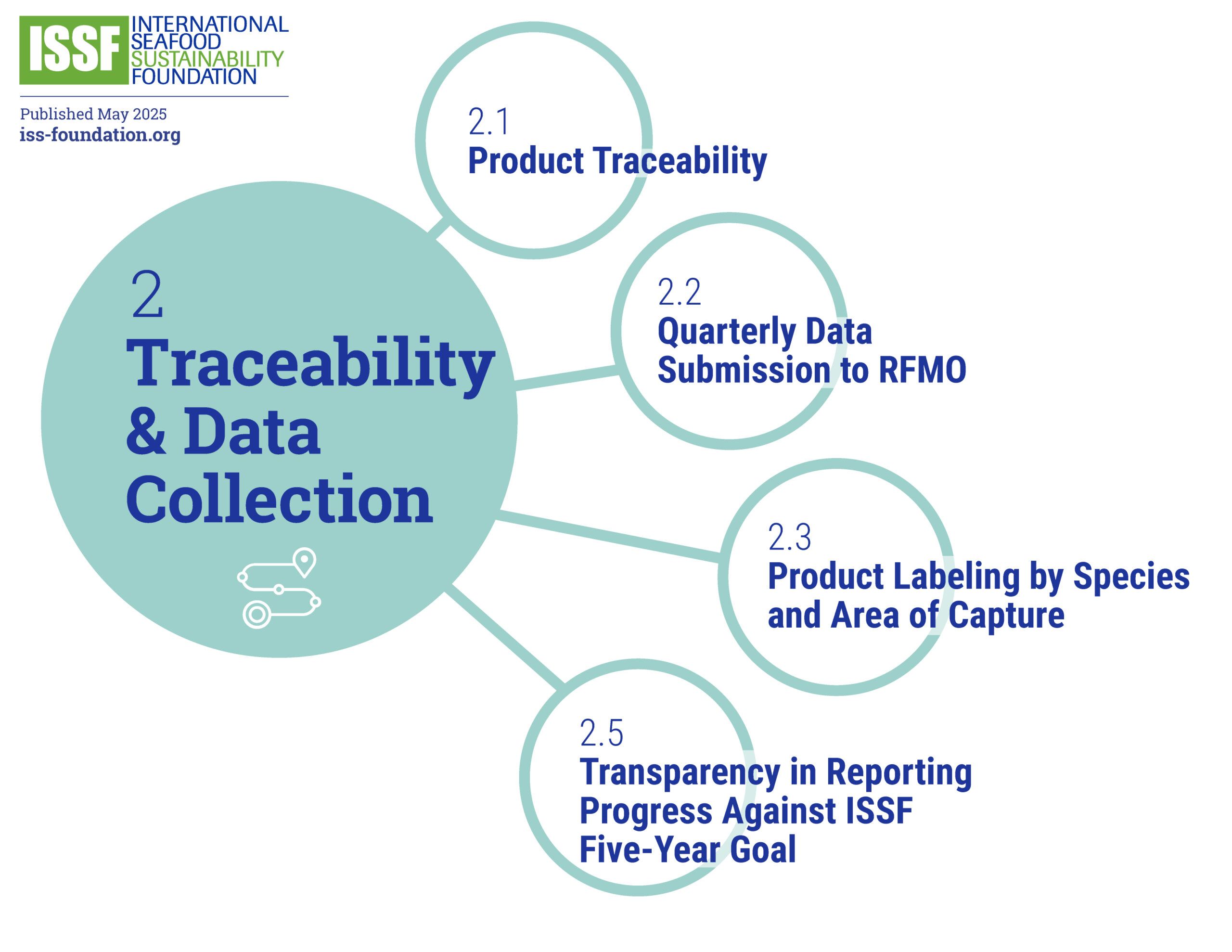 This infographic shows ISSF conservation measures as of May 2025 that are focused on traceability and data collection.