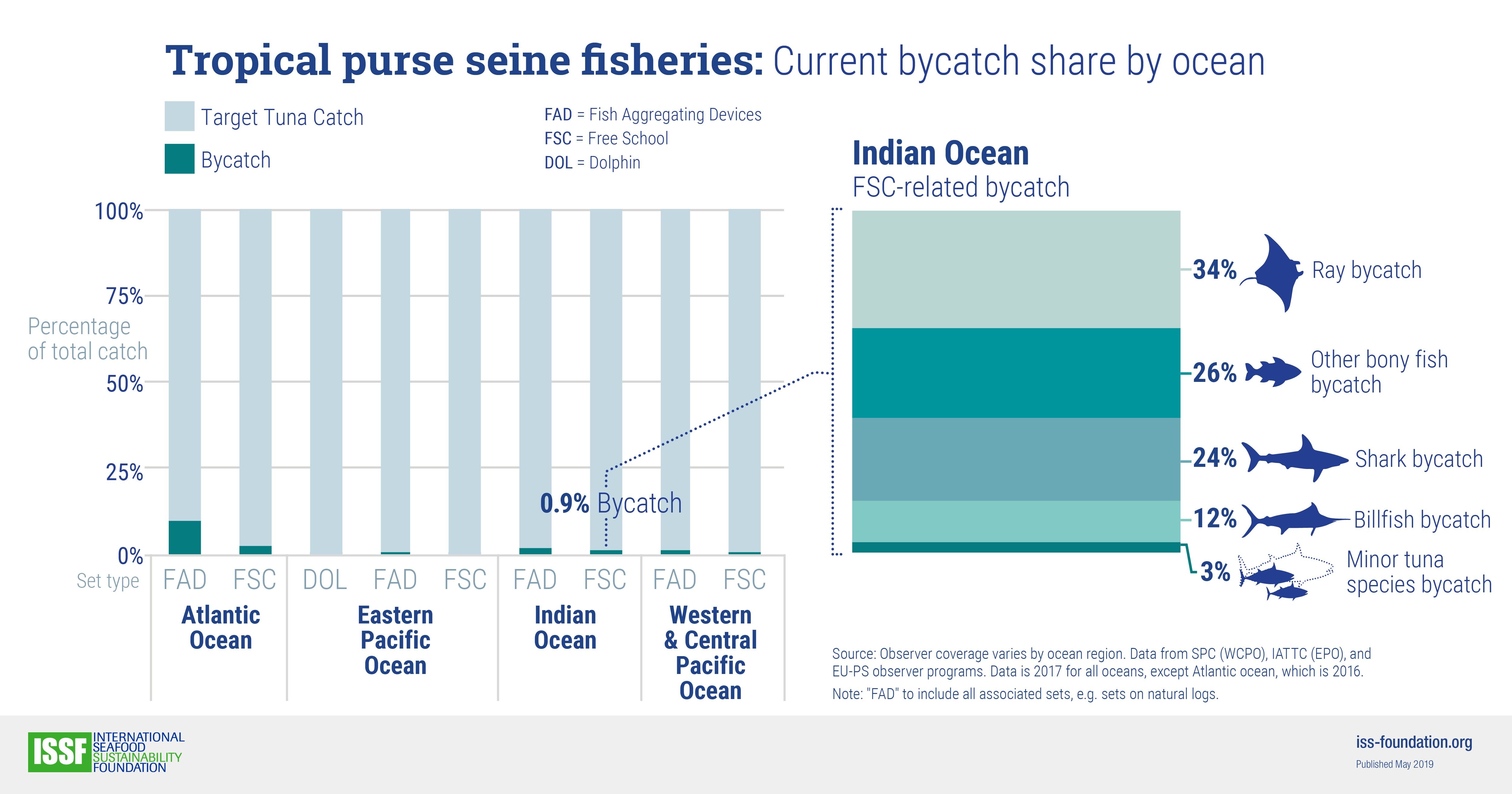 This infographic is part a four-part series, “Tropical Purse Seine Fisheries: Current Bycatch Share by Ocean.”