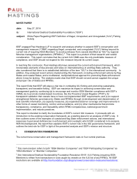 ISSF engaged Paul Hastings LLP to research and analyze whether to expand ISSF’s conservation and management measure (“CMM”) regarding illegal, unreported, and unregulated (“IUU”) fishing beyond its current role of requiring ISSA Members to avoid purchases from vessels identified as “IUU” by regional fisheries management organizations (“RFMOs”). This report is a product of that research and careful consideration. This report concludes that the current IUU CMM uses the only predictable measure of compliance, and ISSF should not expand its IUU measure beyond its current scope.