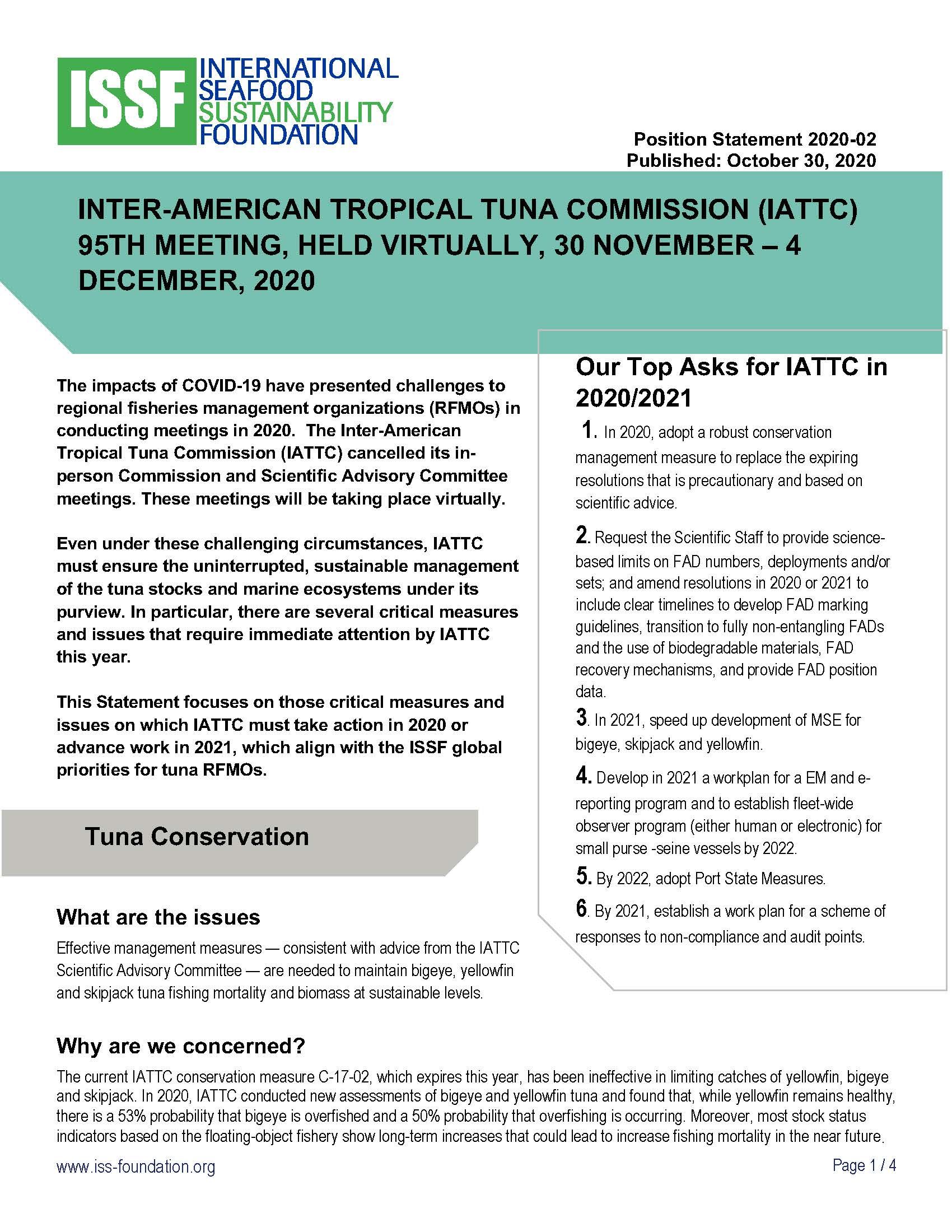 The statement also includes ISSF’s top “asks” or requests of IATTC, along with a list of ISSF’s global priorities for all RFMOs.
