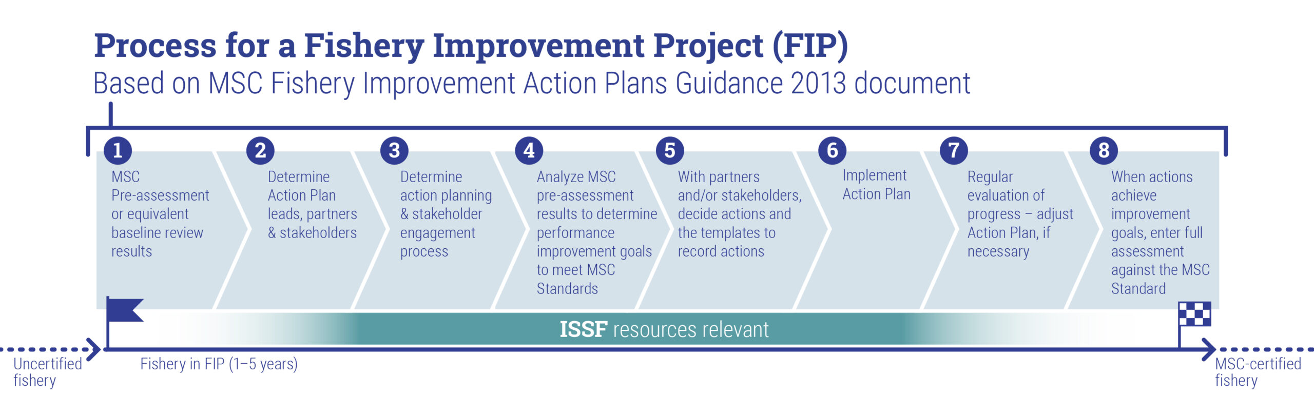 To assist tuna Fishery Improvement Projects (FIPs), including those focused on Marine Stewardship Council (MSC) fishery certification, ISSF offers a variety of resources.