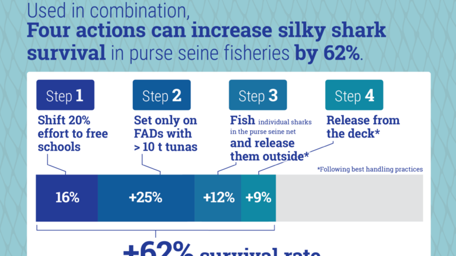 ISSF has created infographics showing best-practice techniques for handling and releasing incidentally caught sharks in purse-seine fisheries.